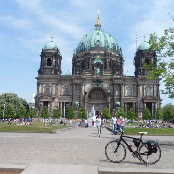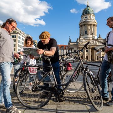 Unsere Tour „Berlin Mitte“ führt von einem geschichtsträchtigen Startpunkt, der Bornholmer Straße, wo sich die ersten Berliner aus Ost und West am Tag des Mauerfalls jubelnd in den Armen lagen, auf Radwegen und Nebenstraßen, zum Brandenburger Tor und zurück.