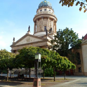 Auf dem Rückweg unserer Tour kommen wir an zahlreichen modernen und historischen Gebäuden und Plätzen vorbei. Zum Beispiel dem 2005 fertiggestellten Holocaust Mahnmal, dem Potsdamer Platz, einer der modernsten Plätze der Stadt, dem Gendarmenmarkt, man sagt, der schönste Platz Europas und dem Bebelplatz, der 1933 Schauplatz der Bücherverbrennung im dritten Reich war.