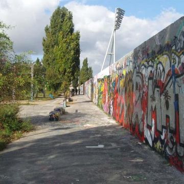 Dem Mauerverlauf folgend radeln wir über den Mauerpark, der sonntags als Flohmarkt, für Karaoke und Musikimprovisationen genutzt wird, und dadurch viel internationales Publikum anzieht, dass den Park am Abend zur Partyzone ausweitet. Von dort aus geht es bis zu der ehemals 1961 bis 1989 geteilten Bernauer Straße.