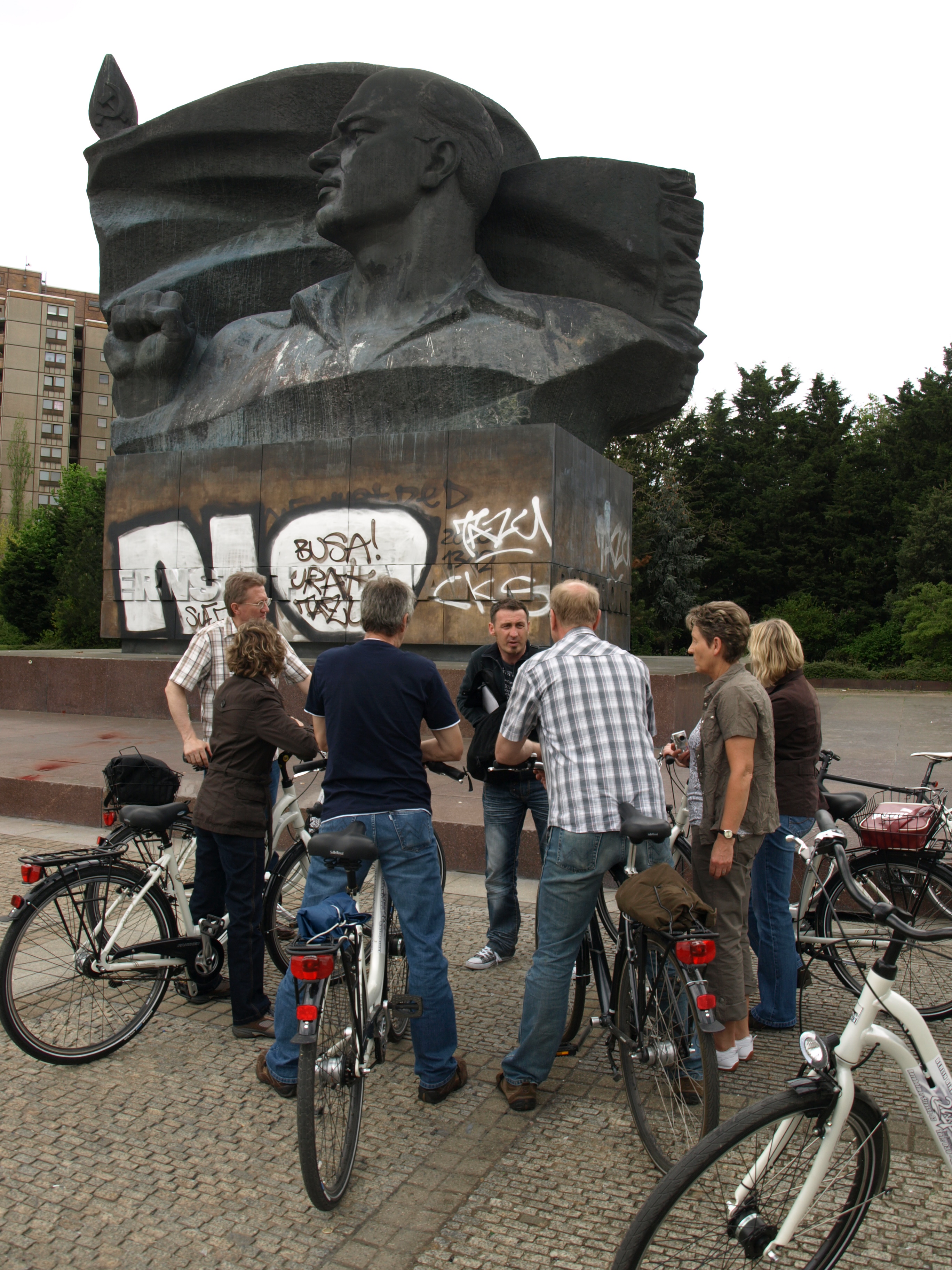 Unsere Prenzlauer Berg-Fahrradtour beginnt – natürlich auf geschichtsträchtigem Boden, nämlich am ehemaligen Grenzübergang Bornholmer Straße, welcher am 9. November 1989 als Erster öffnete. Der sich hier heute befindende “Platz des 9. November 1989“ erinnert an dieses große, weltverändernde Ereignis.